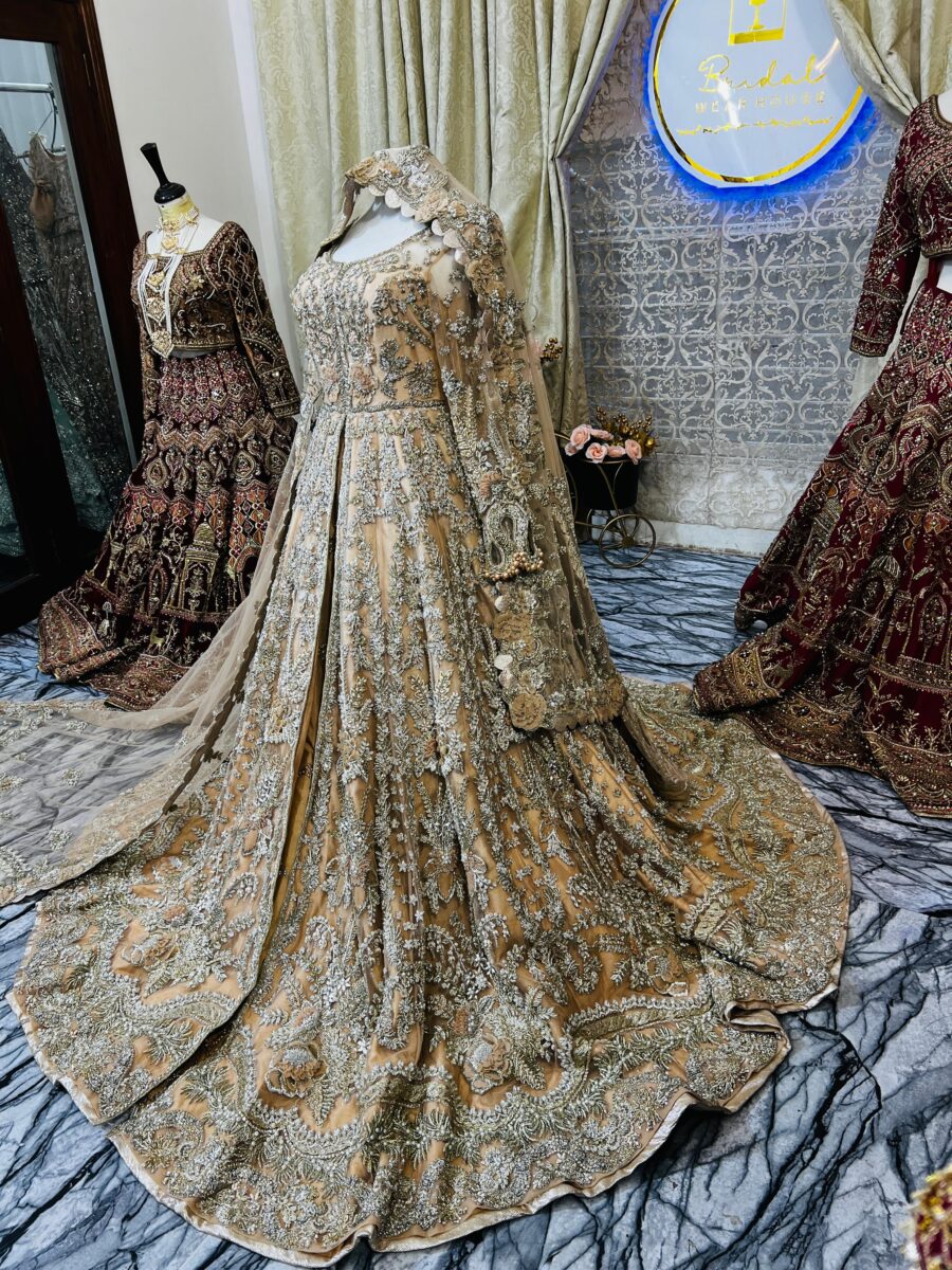 Tailored to perfection using premium net and organza fabrics, the silhouette flows elegantly to the floor, making it ideal for grand entrances and bridal photography. Whether you’re going for a soft glam theme or a contemporary reception look, this outfit makes you feel like royalty—without the heavy price tag.