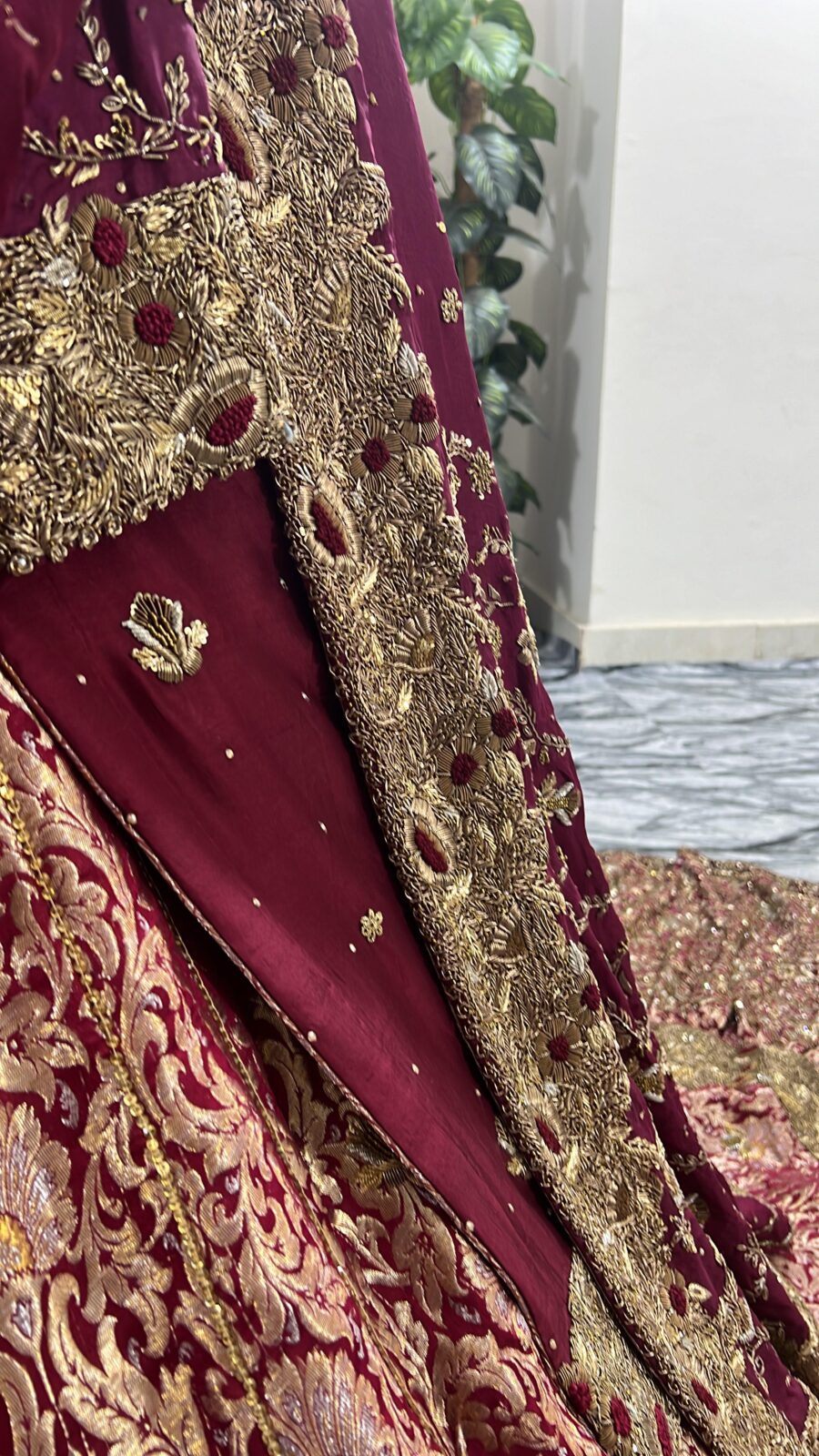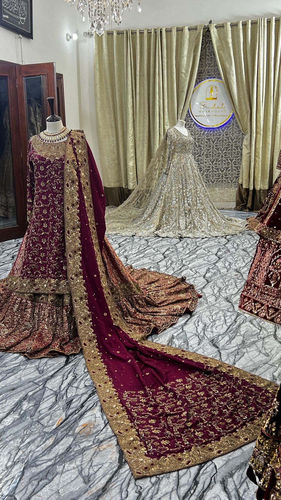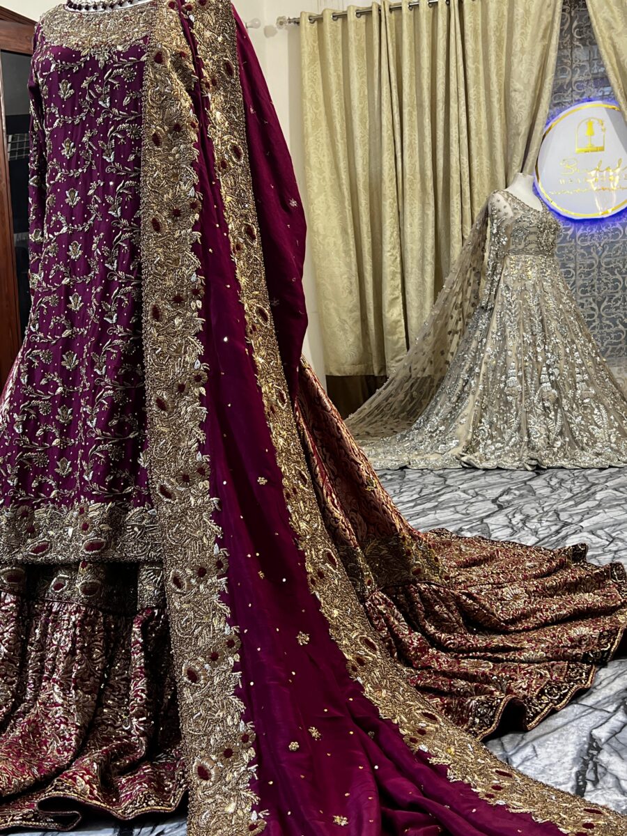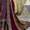 Color options like deep maroon, ivory gold, olive green, and classic black offer versatility while staying rooted in Pakistani wedding culture. Each outfit includes matching accessories to complete your baraat look, so you don’t have to worry about styling anything extra.