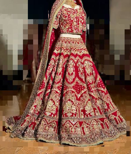 Each element of the outfit showcases the brand’s signature craftsmanship—heavy dabka, zardozi, gota, and resham work are embroidered meticulously by skilled artisans, creating a piece that looks and feels truly royal. The deep hues, often in maroon, crimson, or rust gold, are chosen to complement South Asian skin tones beautifully.